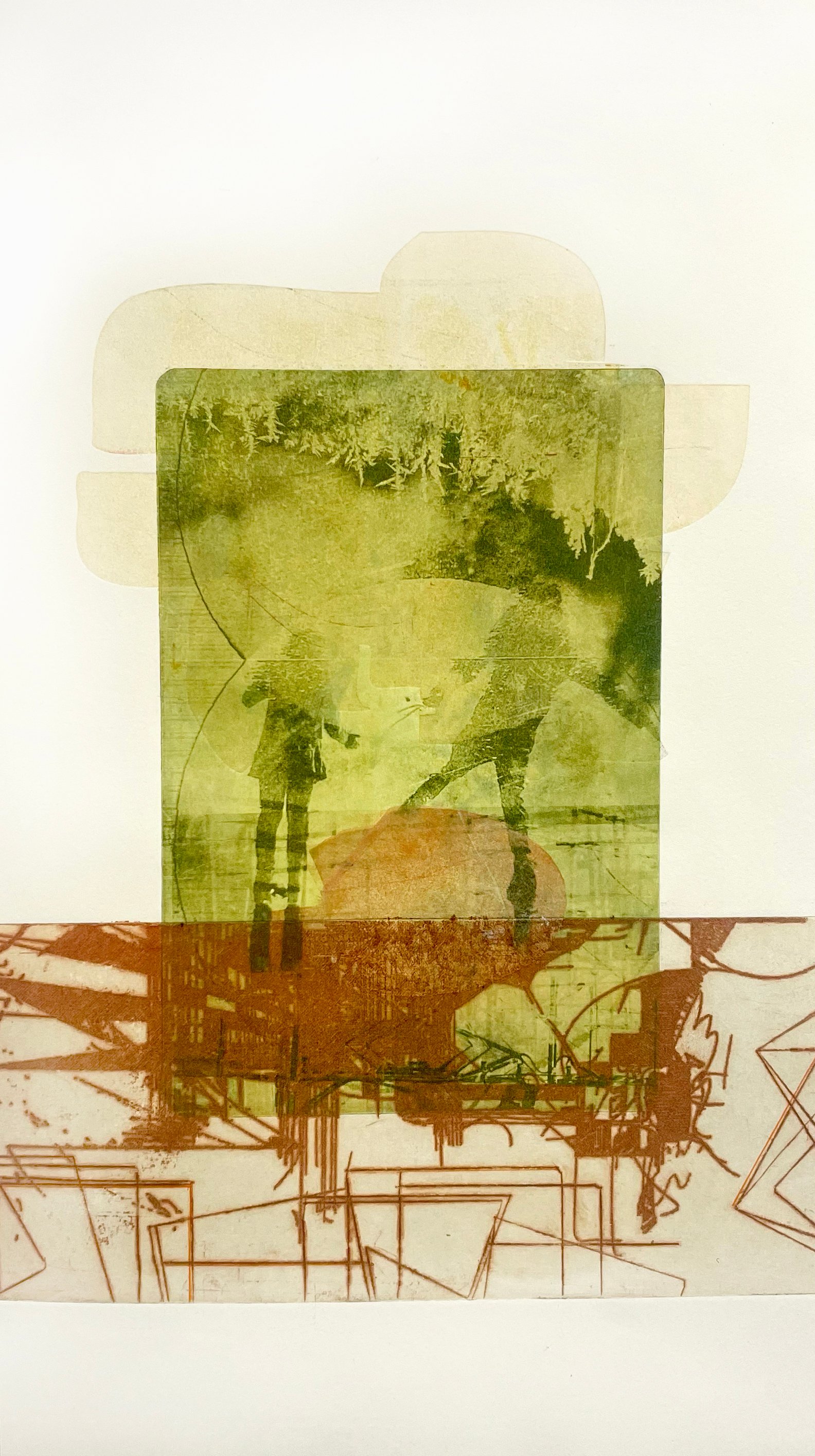 Hybrid Prints - multi plate on paper CNC milled drypoint plate, photopolymer plate, laser cut paper collograph. 1/1 ( one E.A edition)